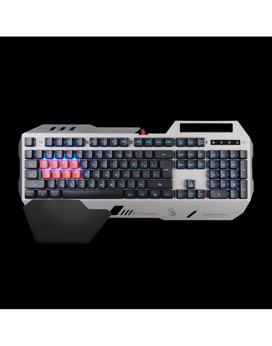 Media keys  Optical Key : Q/W/E/R/A/S/D/F Optic Switch; Optical Key Response:0.2ms; Hotkey:Multimedia hotkey; Gaming Keycaps:8 ABS Keycaps; Water-Resistant:Double Secured; Space-Bar: Screw Enhanced
