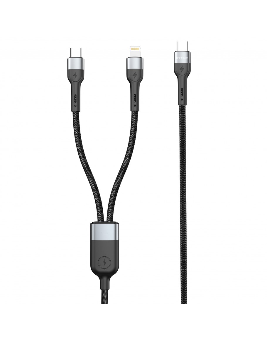 Кабел за данни DeTech DE-49CCL, 2 в 1, Type-C - Type-C, Lightning, 1.0m, Черен - 40514