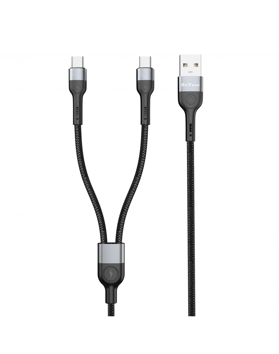 Кабел за данни DeTech DE-52UCC, 2 в 1, USB - 2хType-C, 1.0m, Черен - 40517