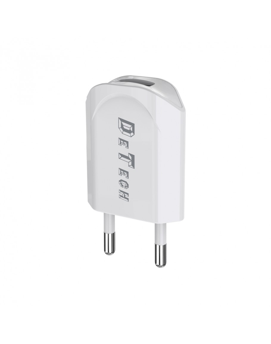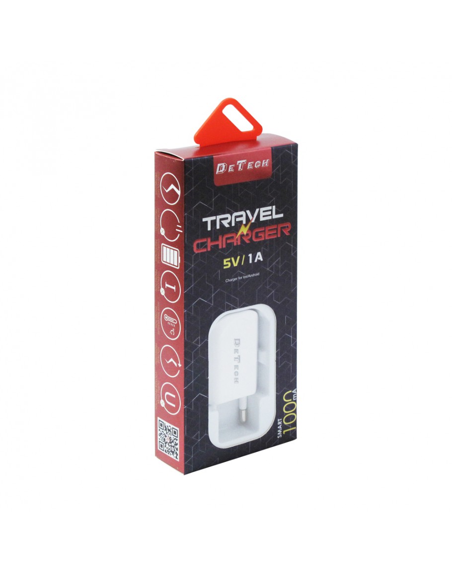 Мрежово зарядно устройство, DeTech, DE-11i, 5V/1A, 220V,1 x USB, С Lightning кабел, 1.0m, Бял - 14116
