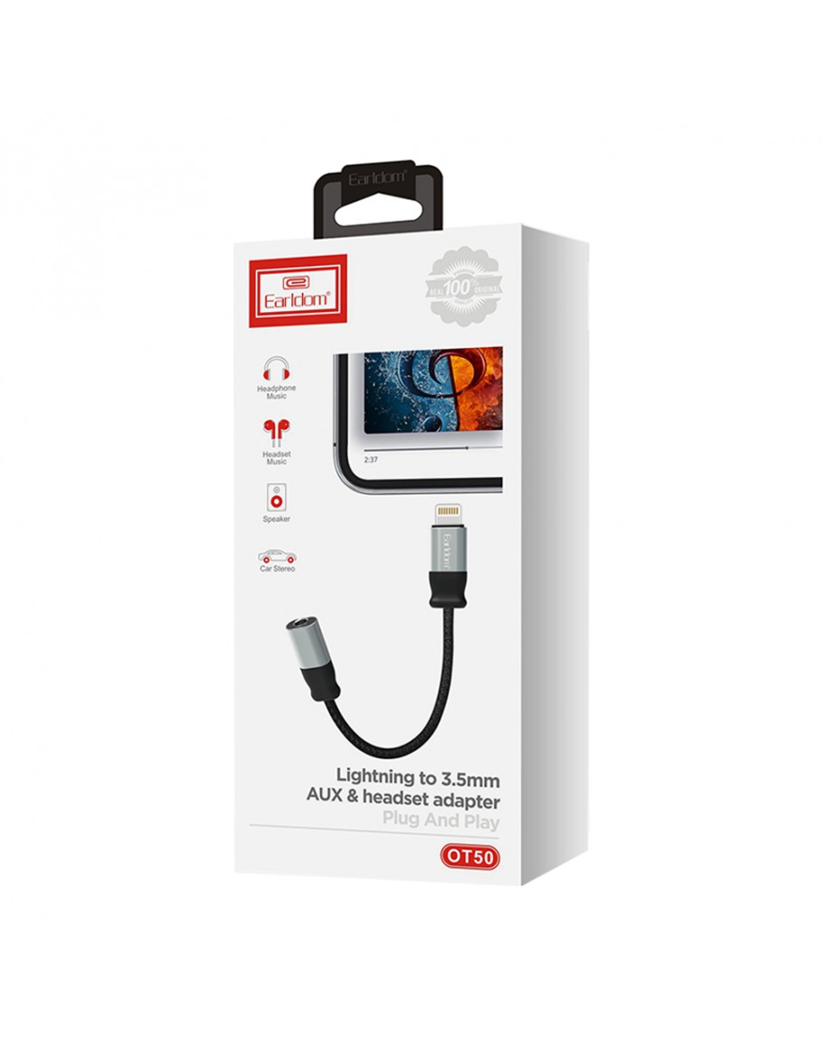 Преходник Earldom ET-OT50, Lightning към 3.5mm F, 0.15m, Черен - 40215