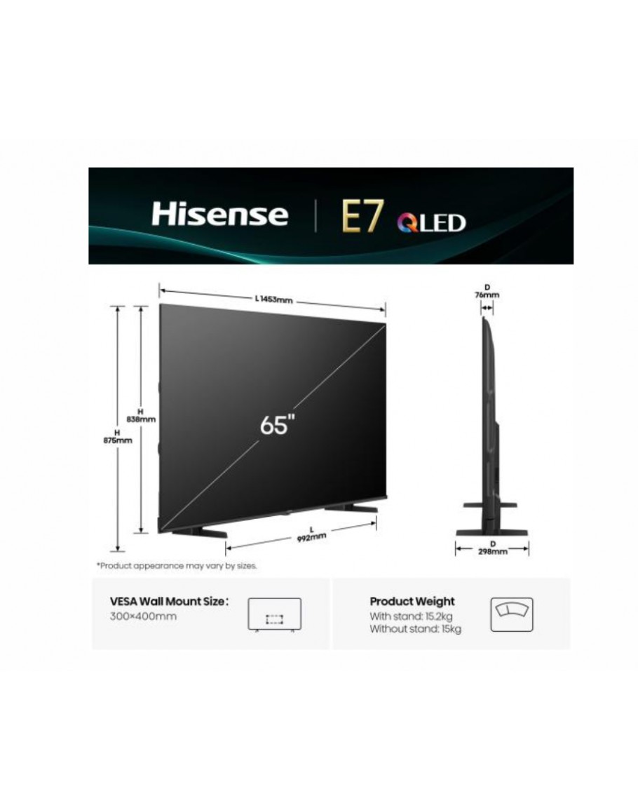 Hisense 65 E7Q, 4K Ultra HD 3840x2160, QLED, Quant