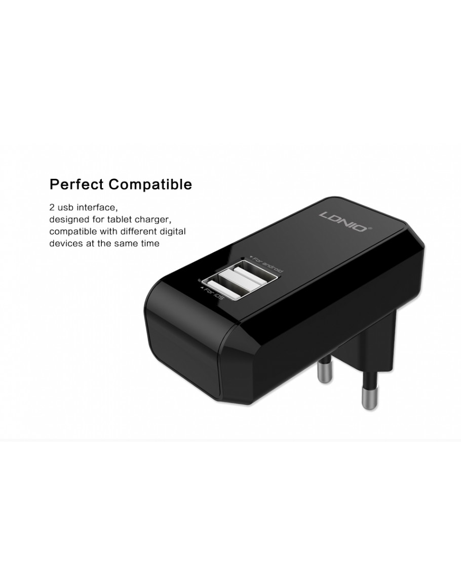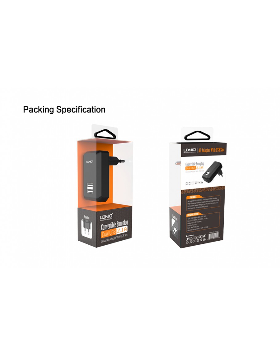 Мрежово зарядно устройство LDNIO DL-АC60 DC100 240V 5V/2,1A Универсално, 2 x USB - 14285