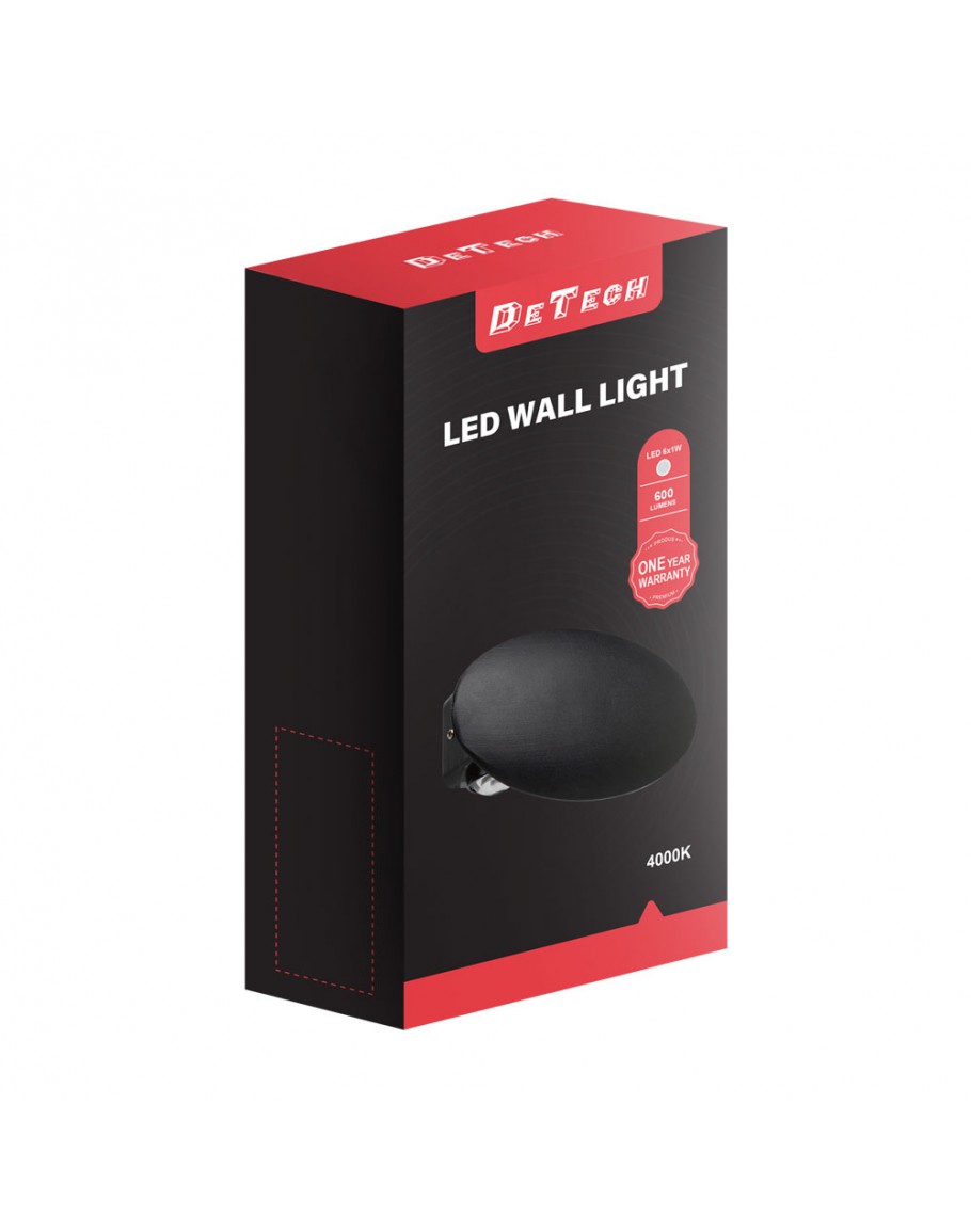 Фасадна лампа аплик DeTech , 6*1W, 4000K, IP44, Овал, Черен - 77032