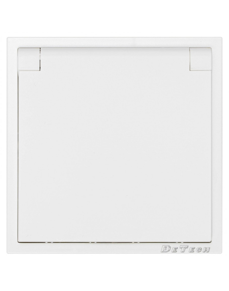 Единичен влагозащитен контакт DeTech DE-9227-45, С рамка, Мат, Шуко, 16А, 250V, За вграждане, IP40, Бял - 75110