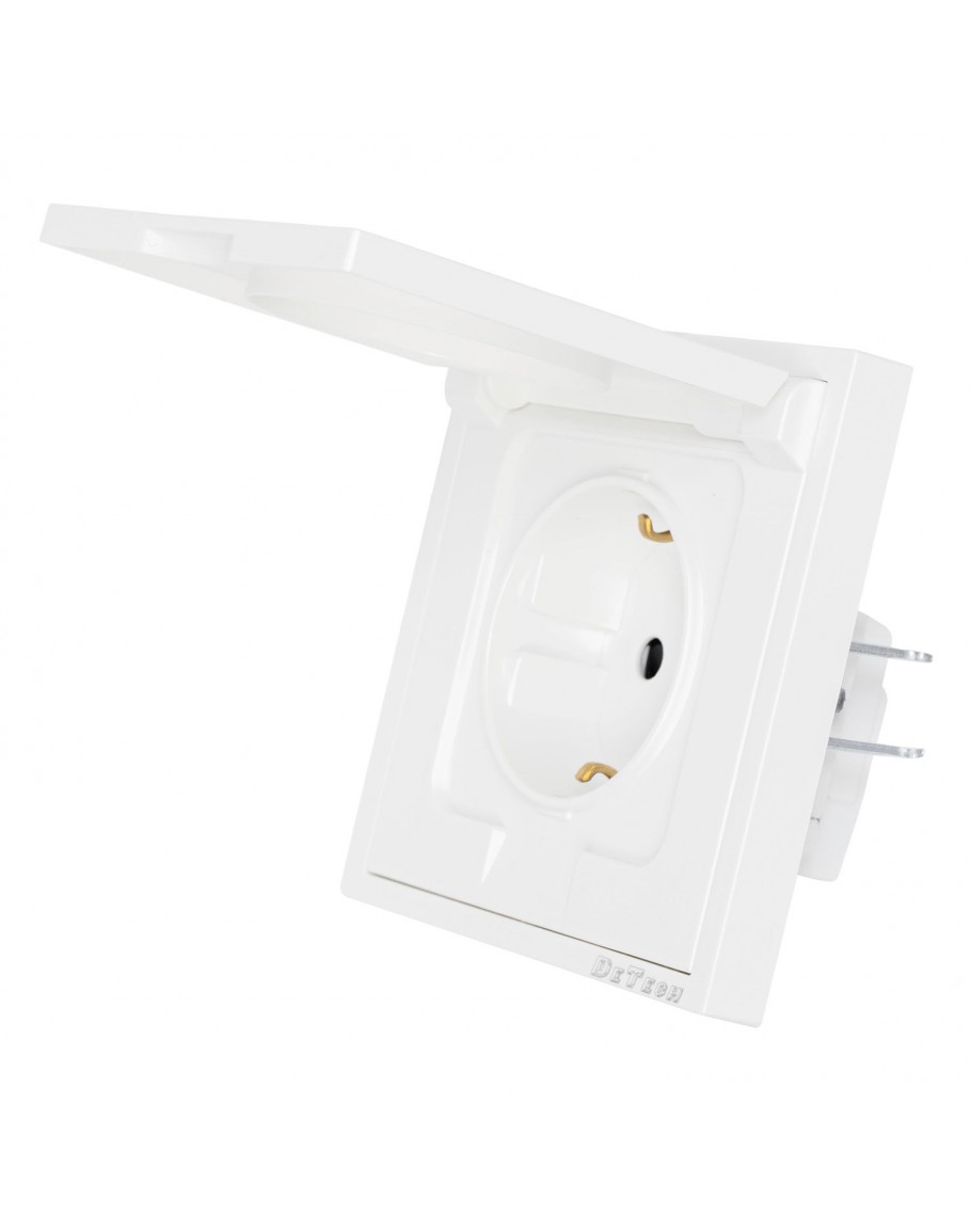 Единичен електрически контакт DeTech DE-9227-45, тип "Шуко", със защита IP40.