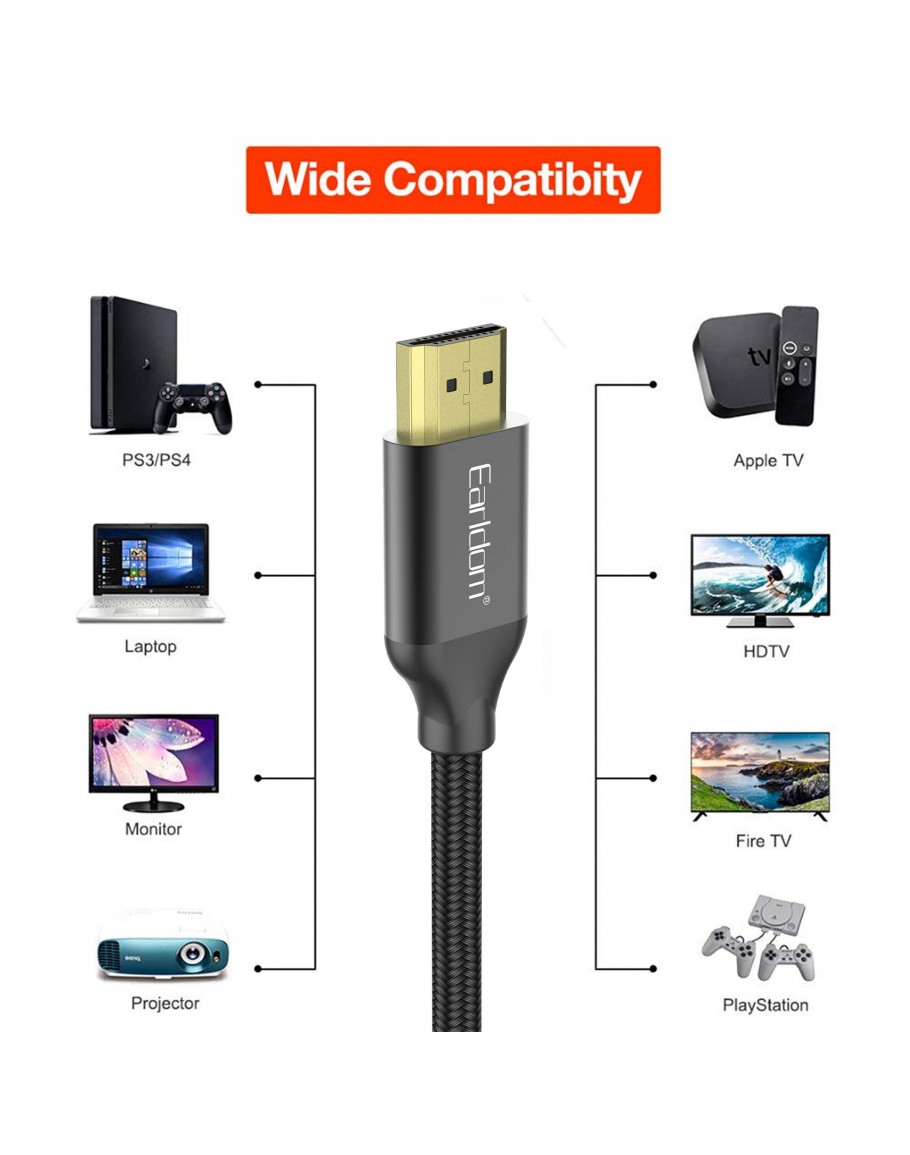Кабел Earldom ET-W26 HDMI - HDMI, 3м., 4K, С оплетка, Черен - 18385