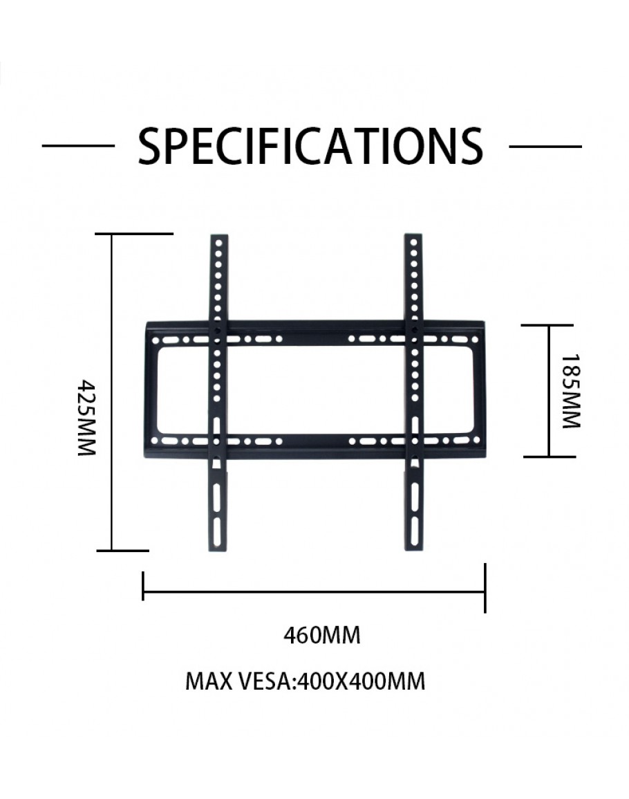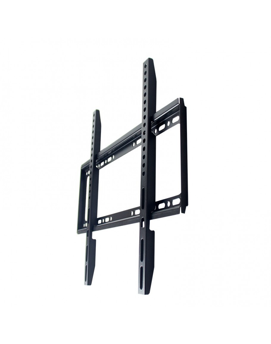 Фиксирана стойка за телевизор за монтаж на стена, подходяща за екрани до 60 инча. Компактна и здрава конструкция в черен цвят, осигуряваща лесен монтаж и стабилно закрепване.