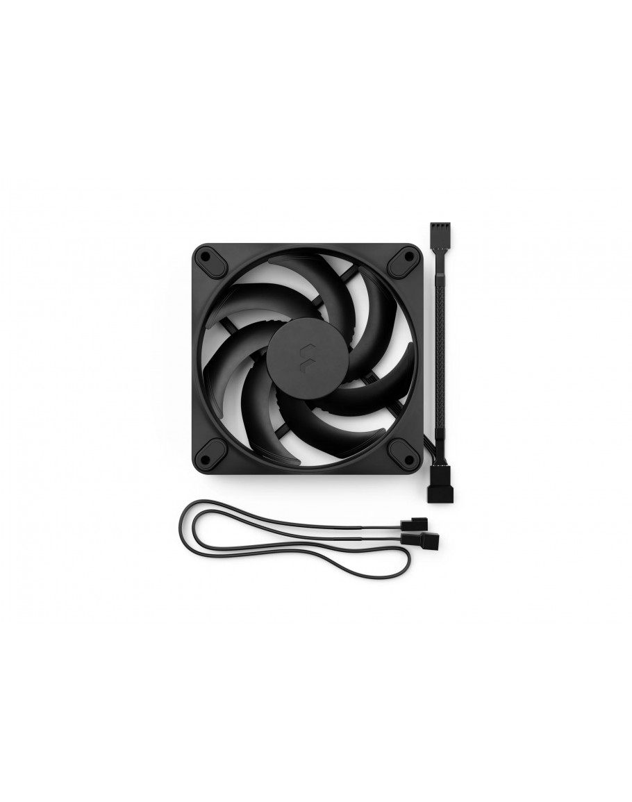 Fan Information  Size: 120 mm;Screw hole pattern: 120 mm;Bearing: FDB (Fluid Dynamic Bearing);Number of blades: 7;Rotational speed: 350 (±150) – 2200 rpm (± 10%);Zero-RPM capability: Yes (0%-10% PWM);Noise level: 31,3 dbA;Airflow (CFM): 67,34;Airflow (m3/h): 114,6;Static pressure: 2,51 mm H2O;Fan input power: 2,4 W;Fan max input current: 0,2 A;Fan input voltage: 12V;Fan starting voltage: 7 V;MTBF: >90 000 h;Unit weight: 163 g;Cable length: 135 mm daisy chain + 500mm extension cable;Cable type: 4-pin PWM connectors