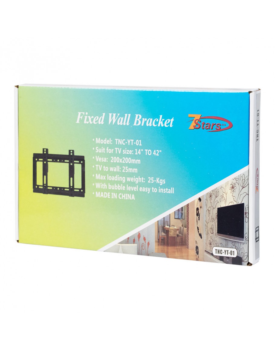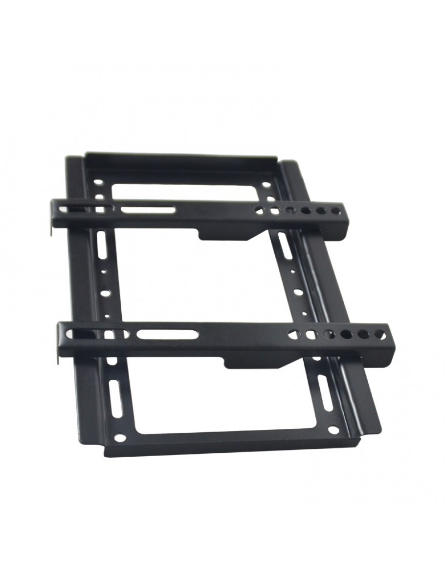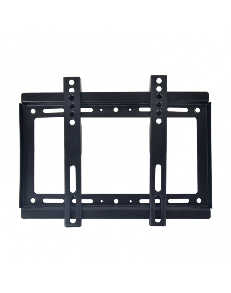 Фиксирана стойка за телевизор за монтаж на стена, подходяща за екрани до 42 инча. Компактна и здрава конструкция в черен цвят, осигуряваща лесен монтаж и стабилно закрепване.