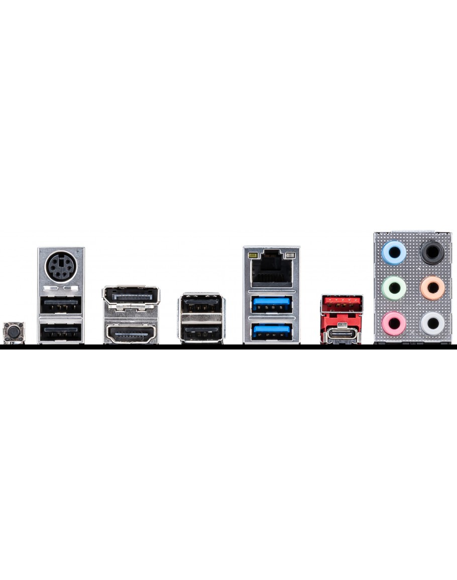 I/O  Keyboard / Mouse; DisplayPort; LAN; HD Audio Connectors; Flash BIOS Button; USB 2.0; HDMI; USB 2.0; USB 3.2 Gen 1 5Gbps Type-A; USB 3.2 Gen 2 10Gbps Type-A+C