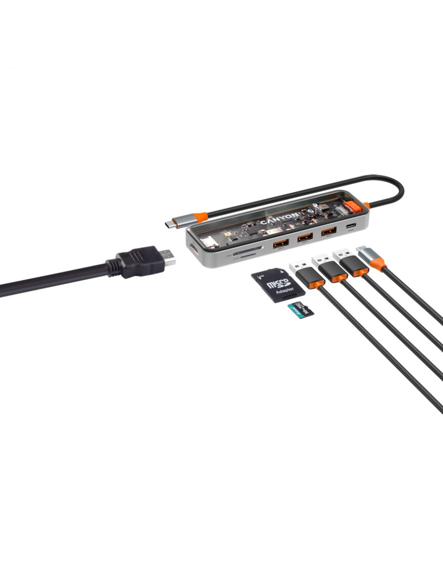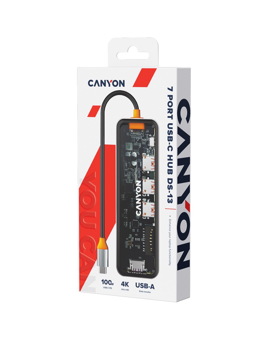 CANYON hub DS-13 7in1 4k USB-C Transparent Space