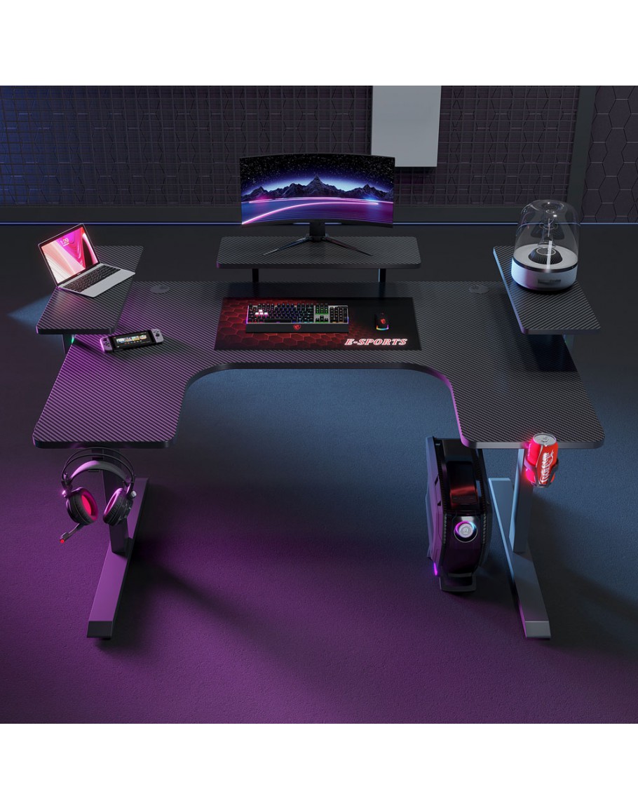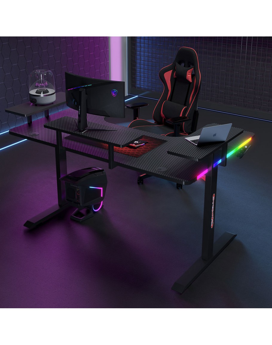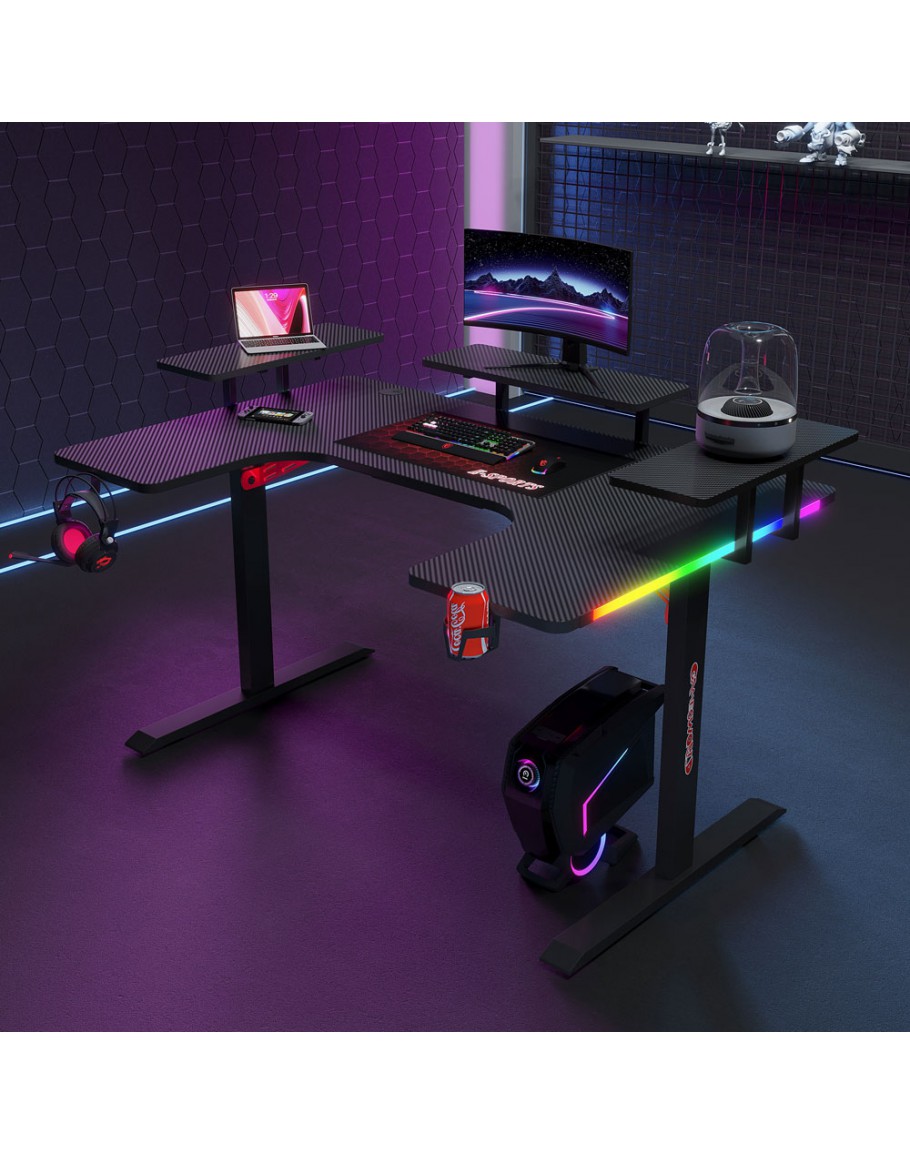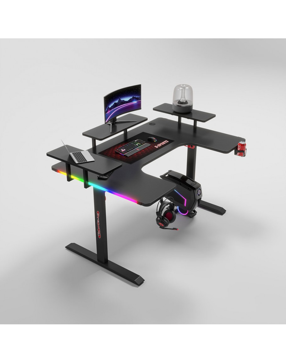 Геймърско бюро 5 в 1 включва поставка за чаша, кука за слушалки, RGB осветление, подложка за мишка