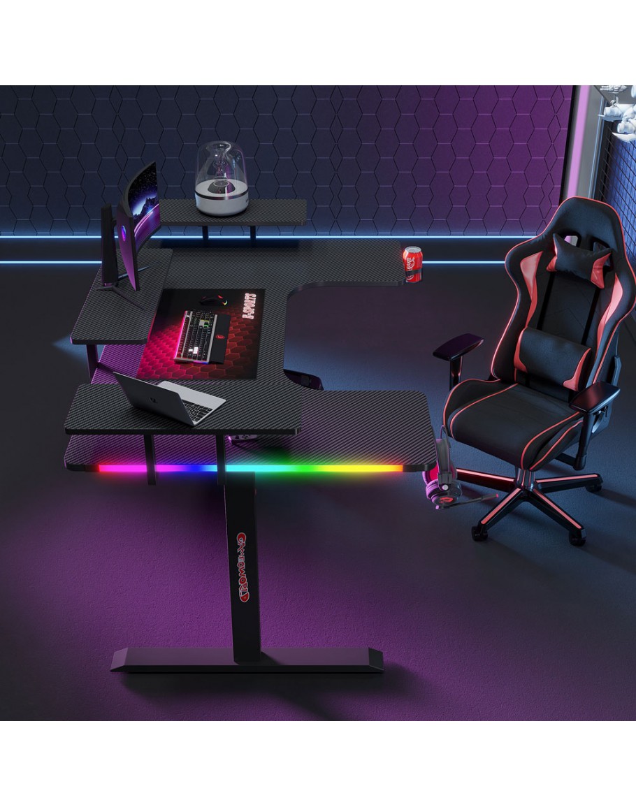 Геймърско бюро No brand P203, 5 в 1, RGB, Черен - 74004