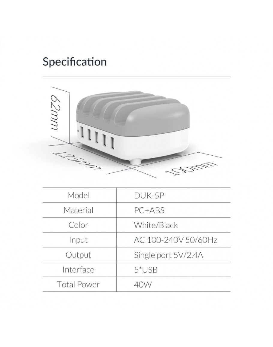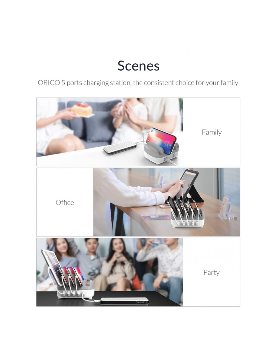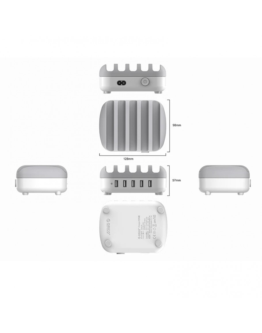 Orico зарядна станция за мобилни устройства Charger Station 220V - 5 x USB 40W White - DUK-5P-EU-WH