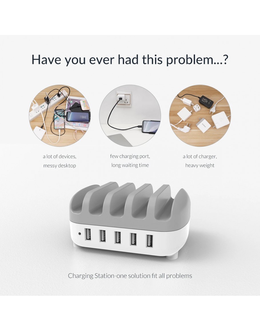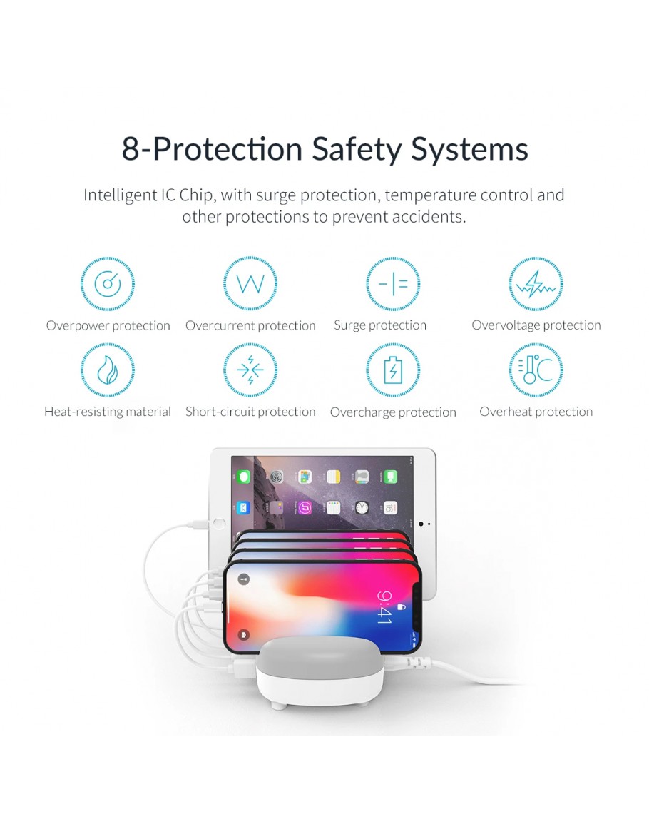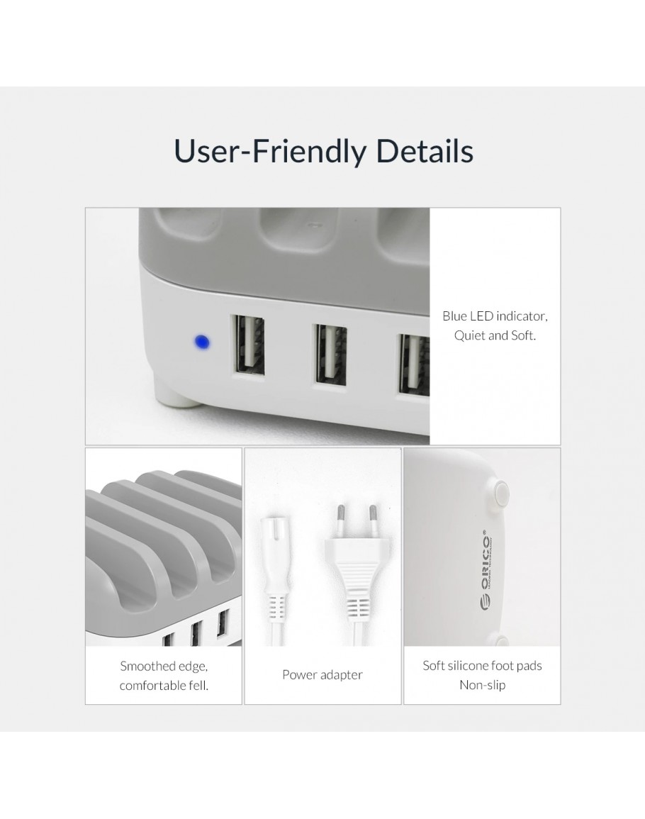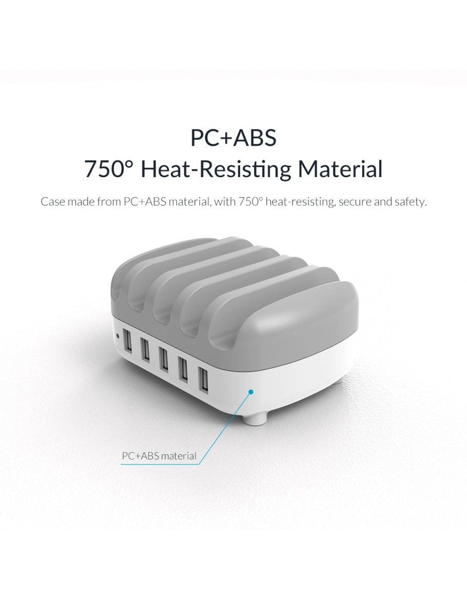 Orico зарядна станция за мобилни устройства Charger Station 220V - 5 x USB 40W White - DUK-5P-EU-WH