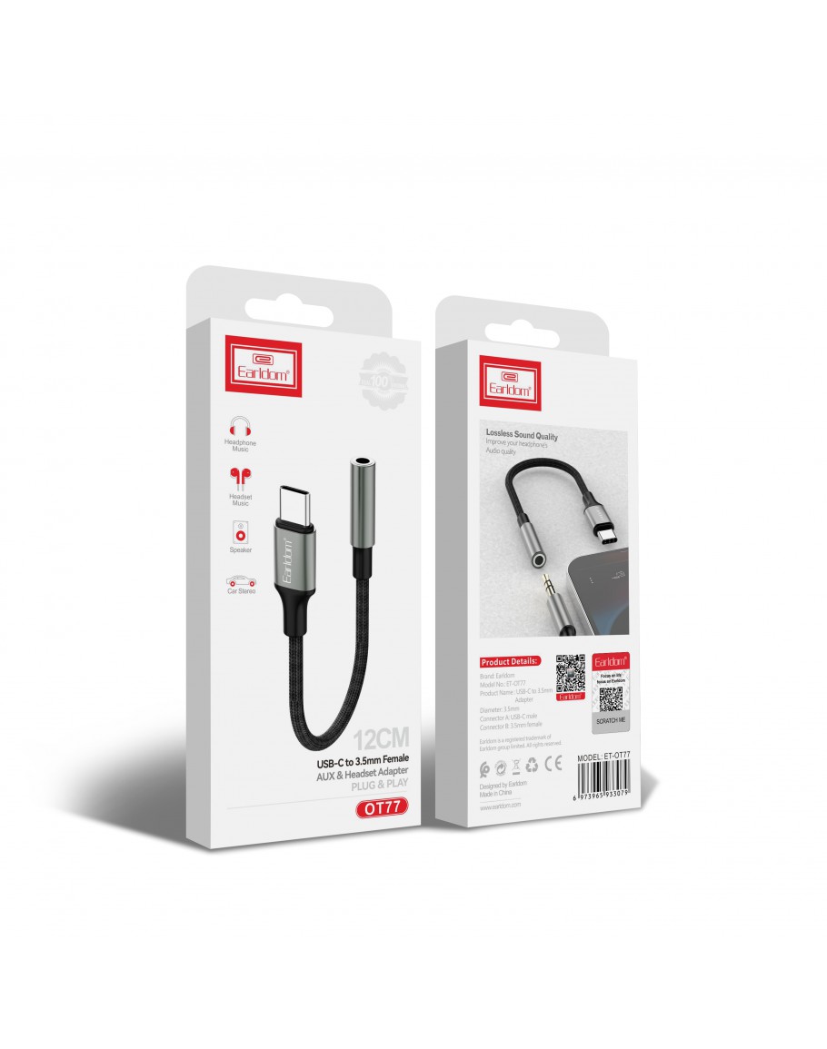 Преходник Earldom ET-OT77, Type-C към 3.5мм (F), Черен - 40364