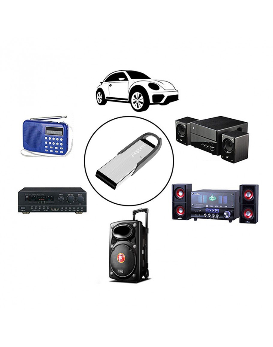 Съвместим с всички устройства, които разполагат с USB вход. (Автомобилни аудио системи, Слушалки, Тонколони, и др.)