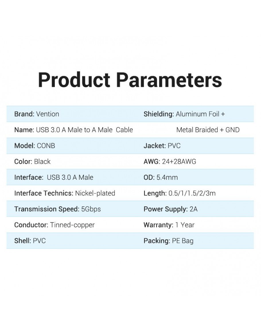 Vention Кабел USB 3.0 AM / AM - 1.5M Black - CONBG